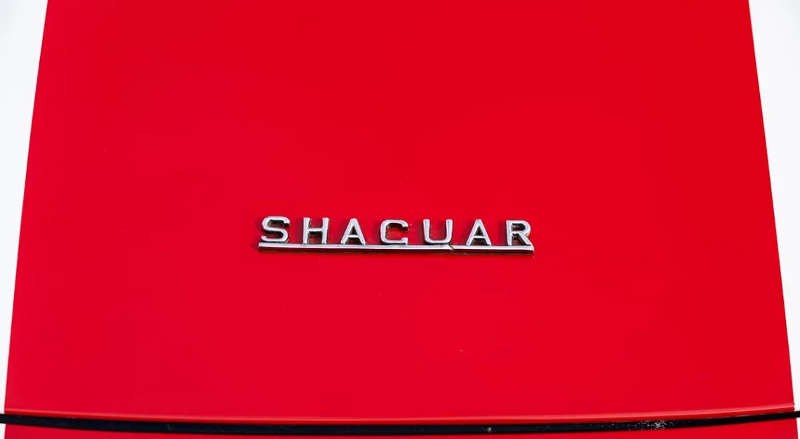 The roadster looks the same today as it did when it appeared in the movie series and the music video for Madonna’s “Beautiful Stranger.” It still wears the distinctive tri-color paint job and has beautiful chrome details, including “Shaguar” branding across the rear deck lid. The interior has the steering wheel on the right side—it was owned by a British spy after all—and is covered in blue leather.