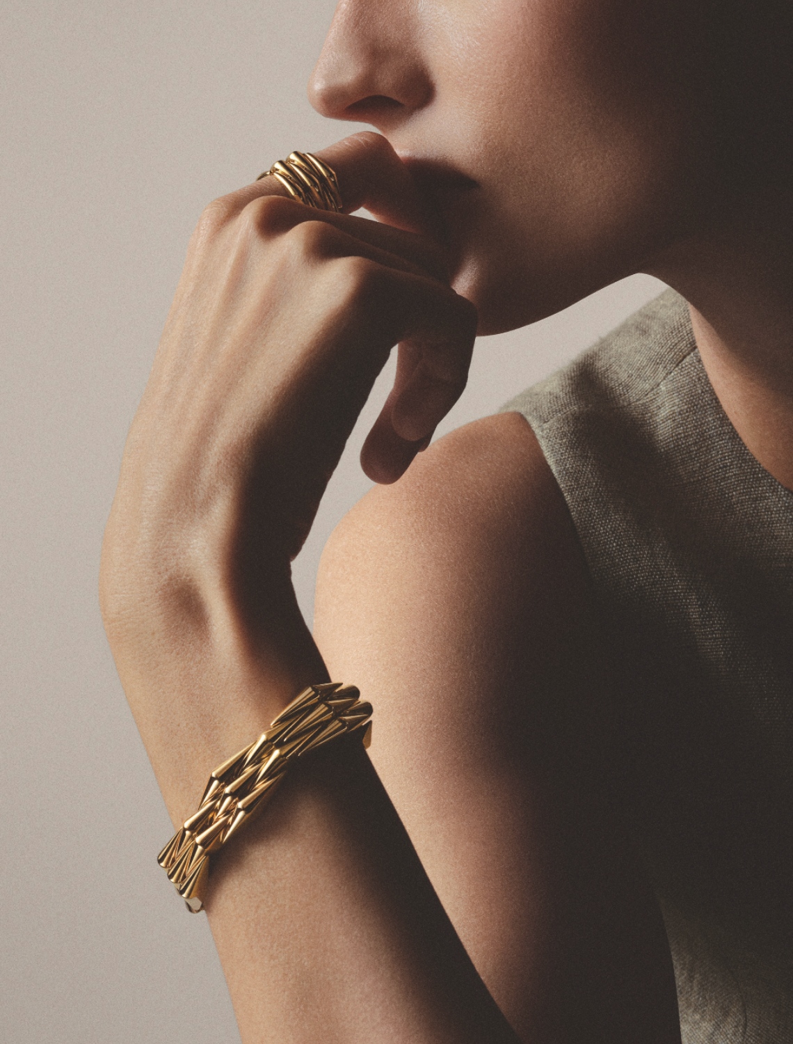 Vimini, the Italian word for “wicker”, lends its name to this 2026 reinterpretation. The design remains faithful to the original bracelet’s woven structure, a nod to the ancient craft of Greek and Roman basket-making, where straw and branches were shaped into everyday objects through repetition, tension, and touch. Here, designers and artisans translate the idea of woven strands into articulated gold modules that move with the body.