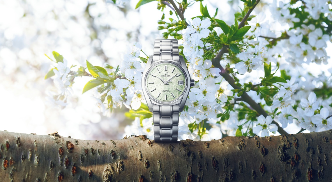 Spring arrives softly in the Tohoku region of northern Japan. Around late-March, cherry trees flower and, on some mornings, a light dusting of snow lands on the blooms. Within weeks, however, the pink of the sakura gives way to the appearance of young, pale leaves. This passage of a season within a season lasts about a month, and it is one that Grand Seiko has chosen to express on the dials of its two newest Hi-Beat watches.