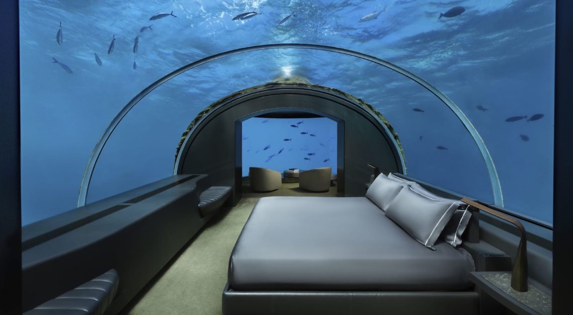 Some places feel imagined before they are experienced—The Muraka is one of them. At Conrad Maldives Rangali Island, this two-level residence invites guests to exist both above and below the Indian Ocean. Upstairs, a serene villa opens onto an infinity pool and uninterrupted sea views. Downstairs, a master suite encased within a curved acrylic dome offers a 180-degree panorama into the underwater world—an immersed existence among coral gardens, shifting light in gentle undulations, and reef life gliding past in silence is promised and celebrated.
