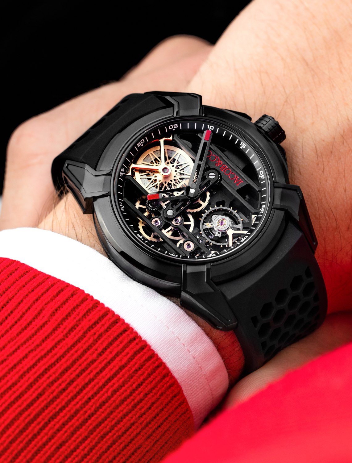 Starting with a diamond-drenched quartz-driven Five Time Zone watch that took the watch and fashion world by storm—especially after supermodel Naomi Campbell was photographed with it— Jacob & Co. quickly moved into the arena of technical watchmaking.
