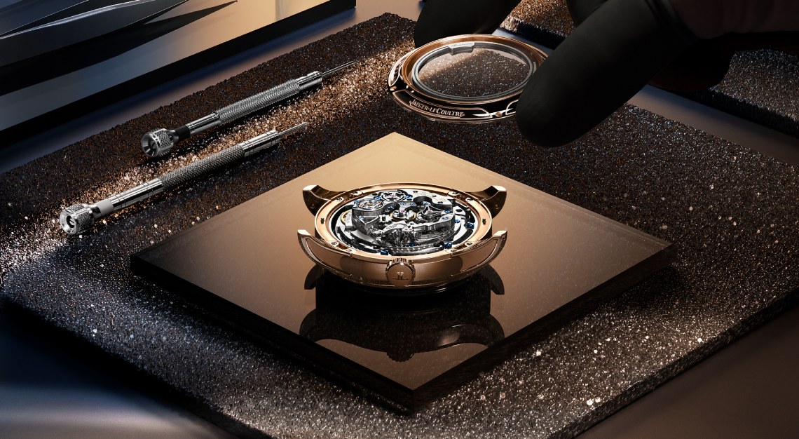 It completes one full rotation every sidereal day (or 23 hours, 56 minutes, and 4 seconds)—the actual time it takes Earth to turn once relative to the stars. Look closely, and you’ll see the constellations shift in real time, just as they would in the night sky above Vallée de Joux. Adding to this sense of wonder is a minute repeater, one of watchmaking’s most poetic complications. Activate the slide on the case and the watch chimes the time with cathedral-length gongs secured to the sapphire crystal. Jaeger-LeCoultre’s patented trebuchet hammers strike with remarkable clarity, producing pure and mellifluous tones that echo the watch’s cosmic beauty.