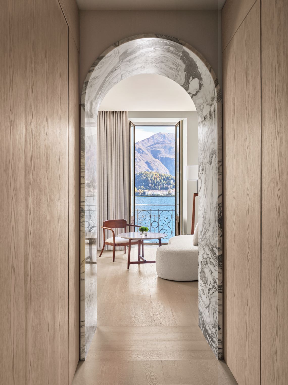 As the 21st addition to the brand’s collection, which spans the world from Singapore to Tokyo and New York to Riviera Maya, The Lake Como Edition creates an inclusive luxury experience from the lake’s western coast in the town of Cadenabbia. Facing the stunning promontory of Bellagio across sparkling waters, it brings new life to a 19th-century palazzo, retaining its original exterior palate of cream, butter and clay, and the high vaulting of its interior lobby. The interior, envisioned by Edition creative directors, Kirstin Bailey and Paul Haslhofer, and design studio Neri&Hu, includes contemporary updates like marble-faced archways, terrazzo floors and floor-to-ceiling glass walls that reveal gorgeous views of the lake.