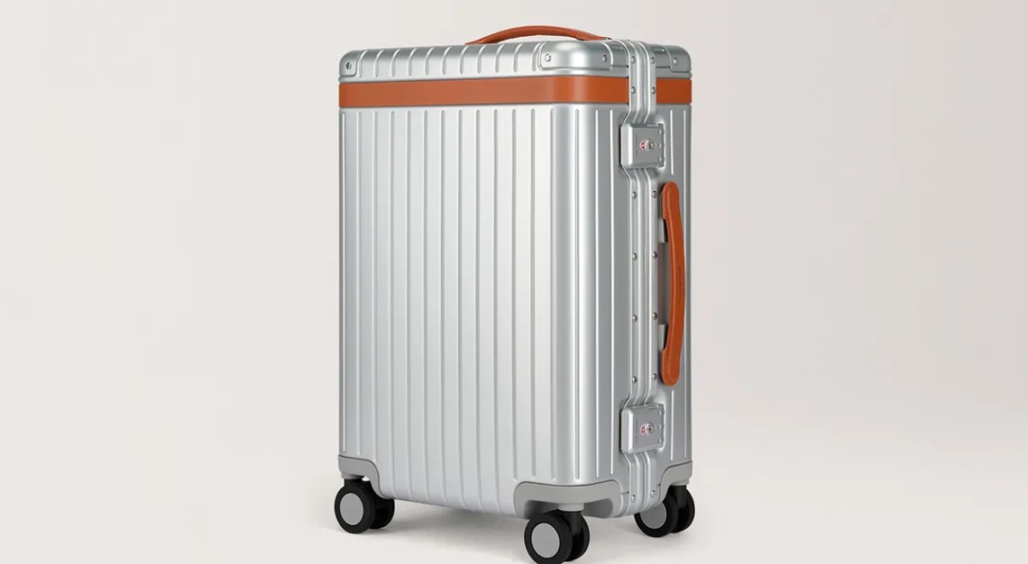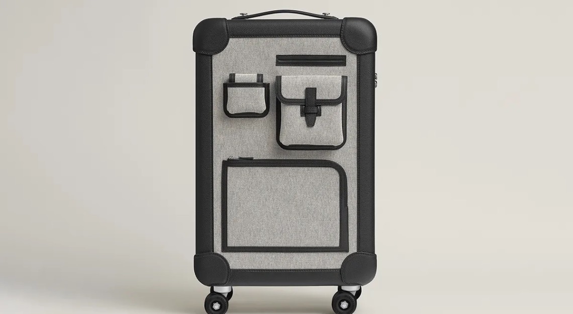 Hermès’s R.M.S. Cargo Cabin Suitcase blends leather, canvas, and skateboard-style wheels.