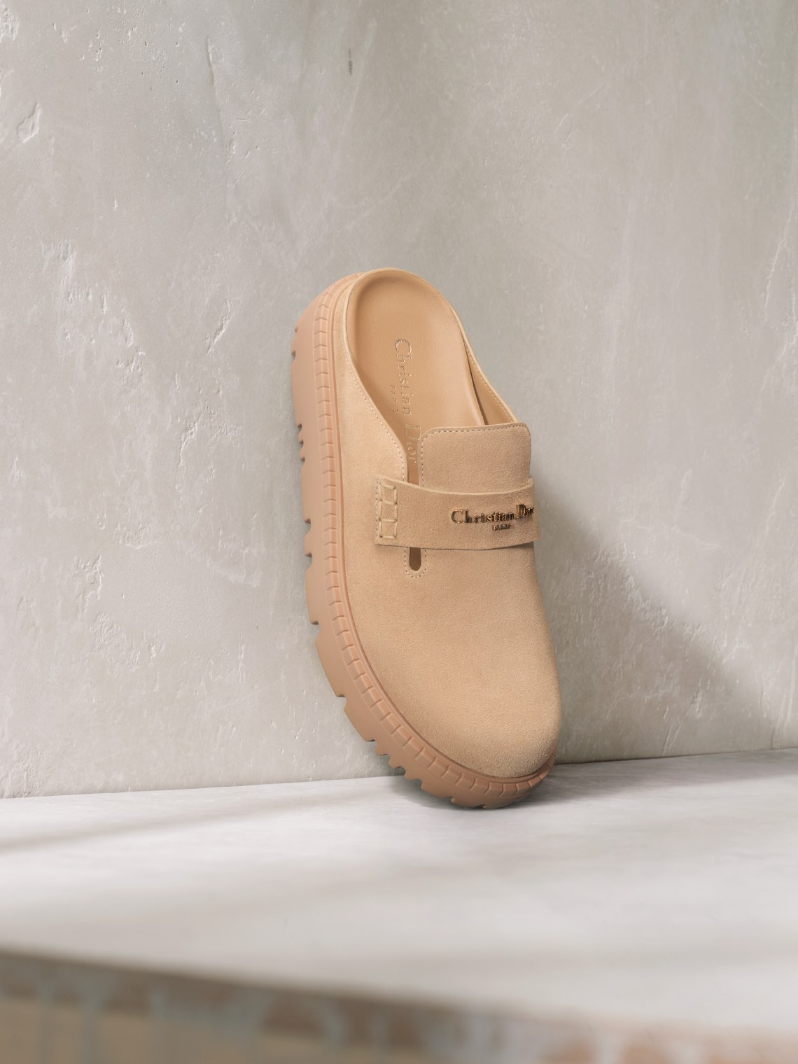 These shoes are the exact definition of Dior’s contemporary elegance. With a formal spirit, assertive allure and androgynous charm, they reveal a bold silhouette with a generous breadth and chunky sole that prioritises comfort. Available in suede featuring only refined shades like black, rope and ebony, in an open-back mule version or with the addition of a small heel.