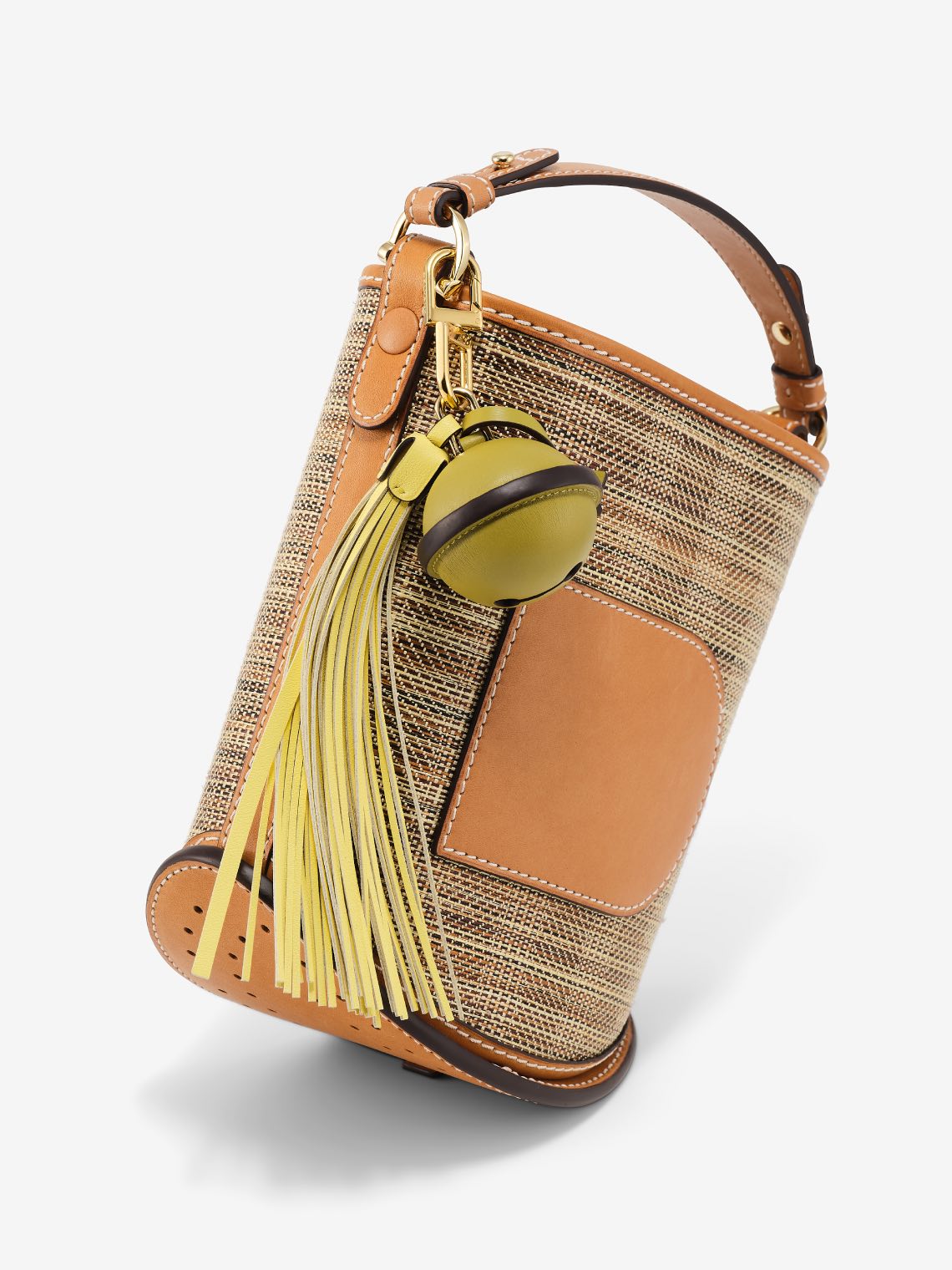 Delvaux’s Pin Mini Bucket, embellished with a horse bell charm for an extra festive touch. Photo by Delvaux