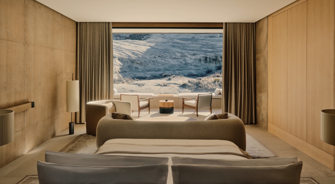 Set within Utah’s pristine wilderness and built with its own spa, gym and 36-metre pool, this villa would be the first of an exclusive collection of 12 private residences in the untouched region of North America’s Canyon County. Designed by Marwan Al-Sayed of MASASTUDIO, one of the original architects of Amangiri, the 1,115-sqm villa integrates seamlessly with the topography, fostering a rare sense of belonging and understanding of its environment. Expansive living areas open onto loggia pavilions, while the primary bedroom enjoys its own private courtyard and heated pool. There’s even a dedicated spa with a steam room, sauna and private fitness studio, overlooking the dramatic sandstone cliffs.
