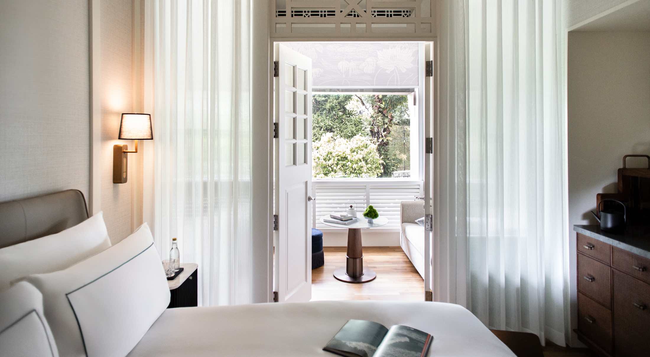 Designed by Jeffrey Wilkes, the property  has also been fitted with warm lighting, updated and contemporary materials, and a more intuitive layout that allows the colonial framework to feel open and casual. Public areas such as the lobby and bar area draw in more daylight and greenery from Fort Canning Park, creating a natural continuity between the building and its surroundings.