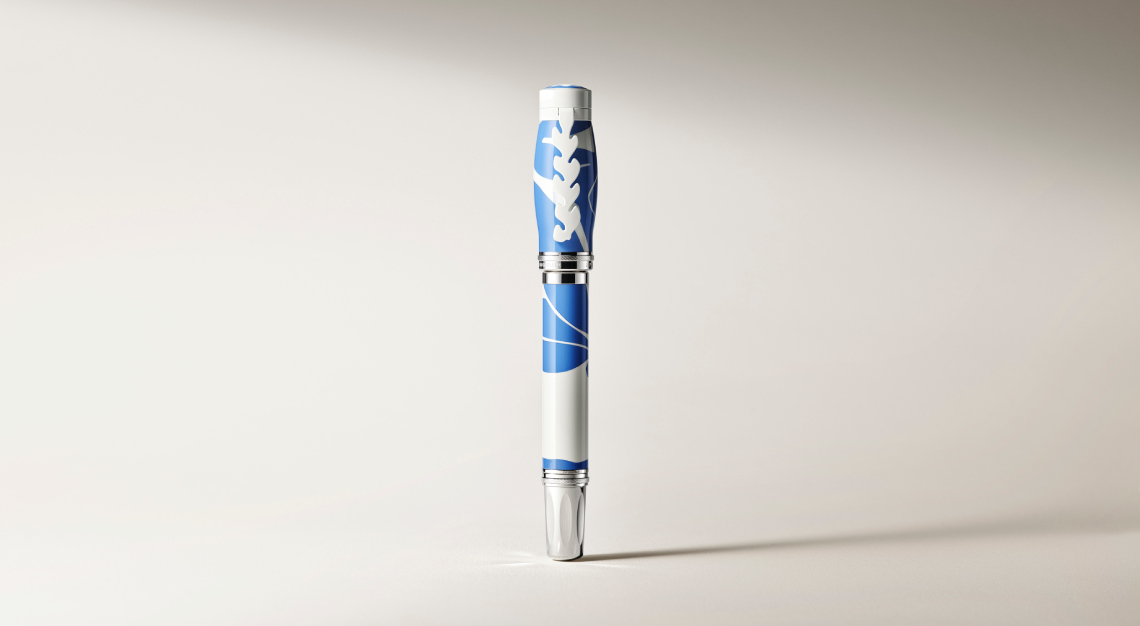 The most accessible entry into the collection, the Limited Edition 4810, draws its imagery from Blue Nude III (1952), one of Matisse’s celebrated paper cut-outs, which he created when illness had made painting physically demanding. What appears at first as an interplay of blue and white lacquer resolves, as the barrel rotates, into the silhouette of a seated female figure. Offered as a fountain pen and rollerball pen, the platinum-coated fittings and a rhodium-coated gold nib, are engraved with the interwoven initials ‘H’ and ‘M’. The limited run of 4,810 pieces also pays homage to the height of Mont Blanc.