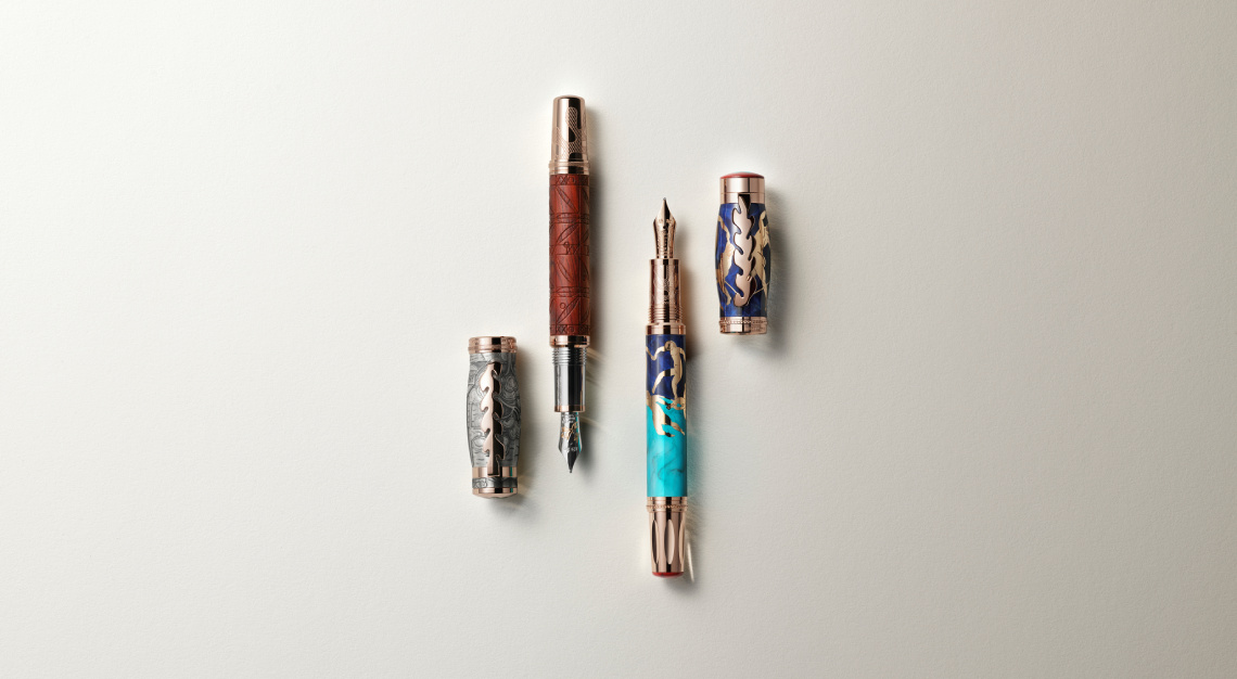 Across the entire series, each Masters of Art Homage to Henri Matisse limited edition artfully expresses a different stage of the artist’s journey. The Limited Edition 96 takes its number from 1896, the year Matisse first exhibited at Salon des Beaux-Arts, and is inspired by the primal energy of The Dance II, sheathed in hand-applied blue and turquoise lacquer, and paired with bronze figures that appear to orbit the cap and barrel. For the Limited Edition 161, the inspiration is Matisse’s revelatory 1930 voyage to Tahiti, a journey that saw the artist freeing himself from the conventions of European art. Constructed from partly blackened sterling silver and warm cocobolo wood, the writing instrument bears a hand-engraved scene from Window in Tahiti, reproducing the trees and boat that Matisse observed from his hotel window in Papeete.