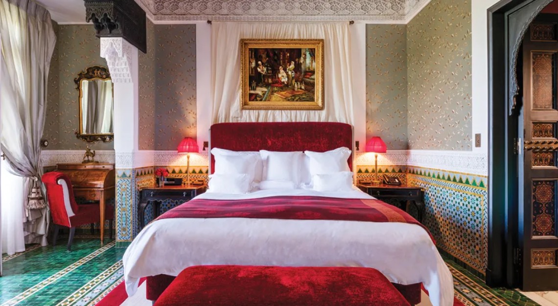 Next comes an extraordinary access to Villa Oasis, the final home of Saint Laurent and Bergé. Closed to all but a handful of visitors each year, the residence reveals rooms layered with carved-woodwork pieces and meticulous artisanal details—an intimate look at the aesthetic that shaped Saint Laurent’s late career. You’ll also tour the Musée Yves Saint Laurent Marrakech and the adjacent Jardin Majorelle, a whimsical botanical fantasia created by artist Jacques Majorelle and painstakingly restored by the couple.