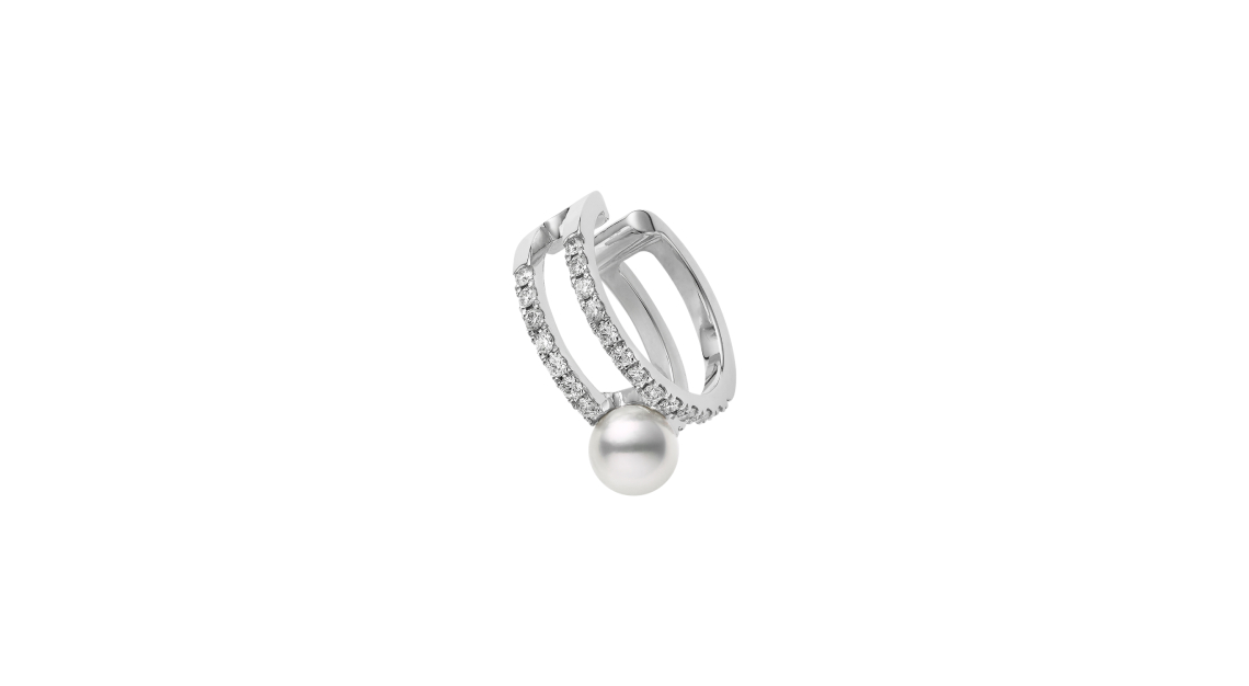 Highlights include 18K white gold earrings, necklaces, rings, and an ear cuff, all crafted with Akoya cultured pearls and diamonds, each tracing its own quiet arc of light. Together, they evoke a sense of graceful motion, allowing the collection’s brilliance to emerge with every turn.