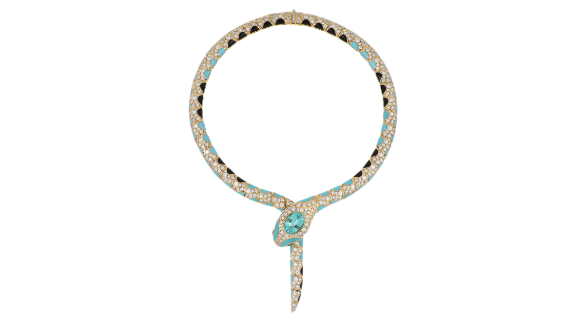 When the dress code reads “formal,” a little black dress becomes the ideal canvas for Bvlgari’s high jewellery to take centre stage. The Serpenti Azure Mirage set delivers a vital pop of colour and character, transforming a simple silhouette into a statement of Roman glamour. Comprising a necklace, bracelet, brooch, and earrings, the ensemble is centred on the hypnotic beauty of Paraiba tourmaline—a gem as rare and electrifying as the serpent that inspires it. Its vivid, Mediterranean-blue glow defines every piece.