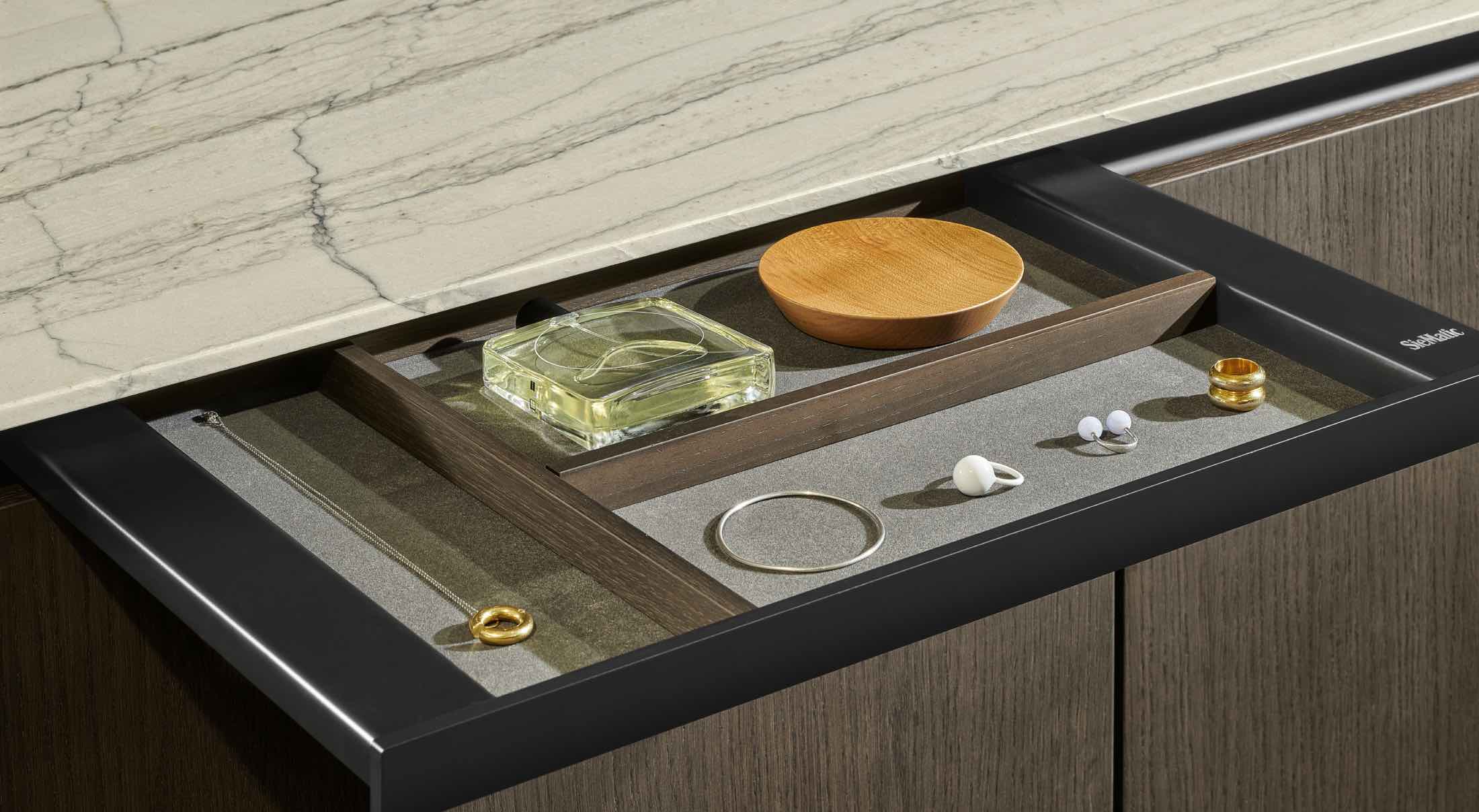 The S2 also introduces features that are designed to make daily use easier and more enjoyable. Two of these — SecretService and SecretSpace — demonstrate SieMatic’s focus on discreet solutions.