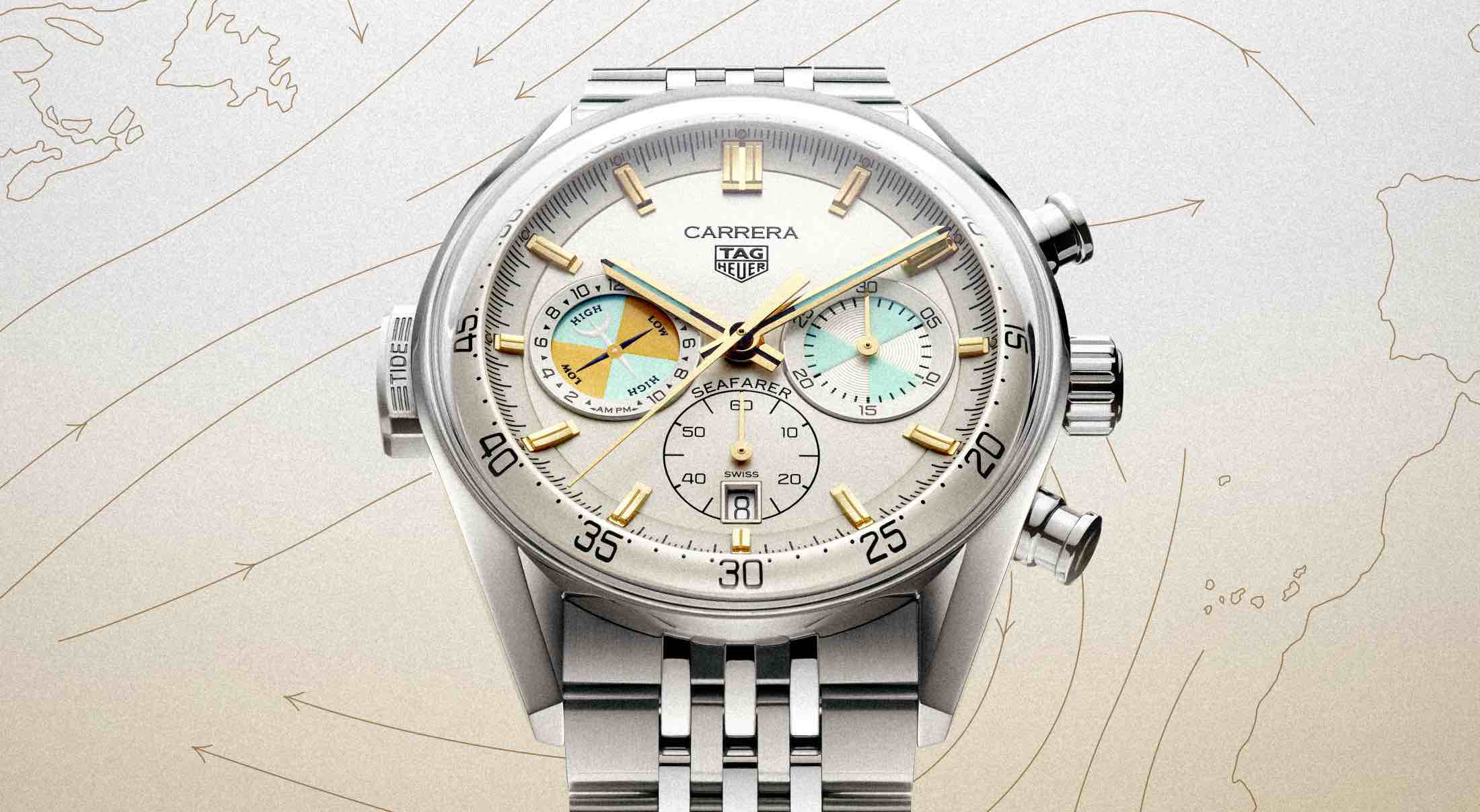 Collectors seeking a novel route through the brand’s archive, however, will find the release of the new Carrera Seafarer immediately appealing. Inspired by the brand’s mid-century tide watches such as the Heuer Seafarer and Solunar, the model draws on a lesser-known strand of the company’s past. These original watches were developed in the late 1940s for Abercrombie & Fitch, incorporating mechanical tide indicators designed to track high and low tides over the lunar cycle.