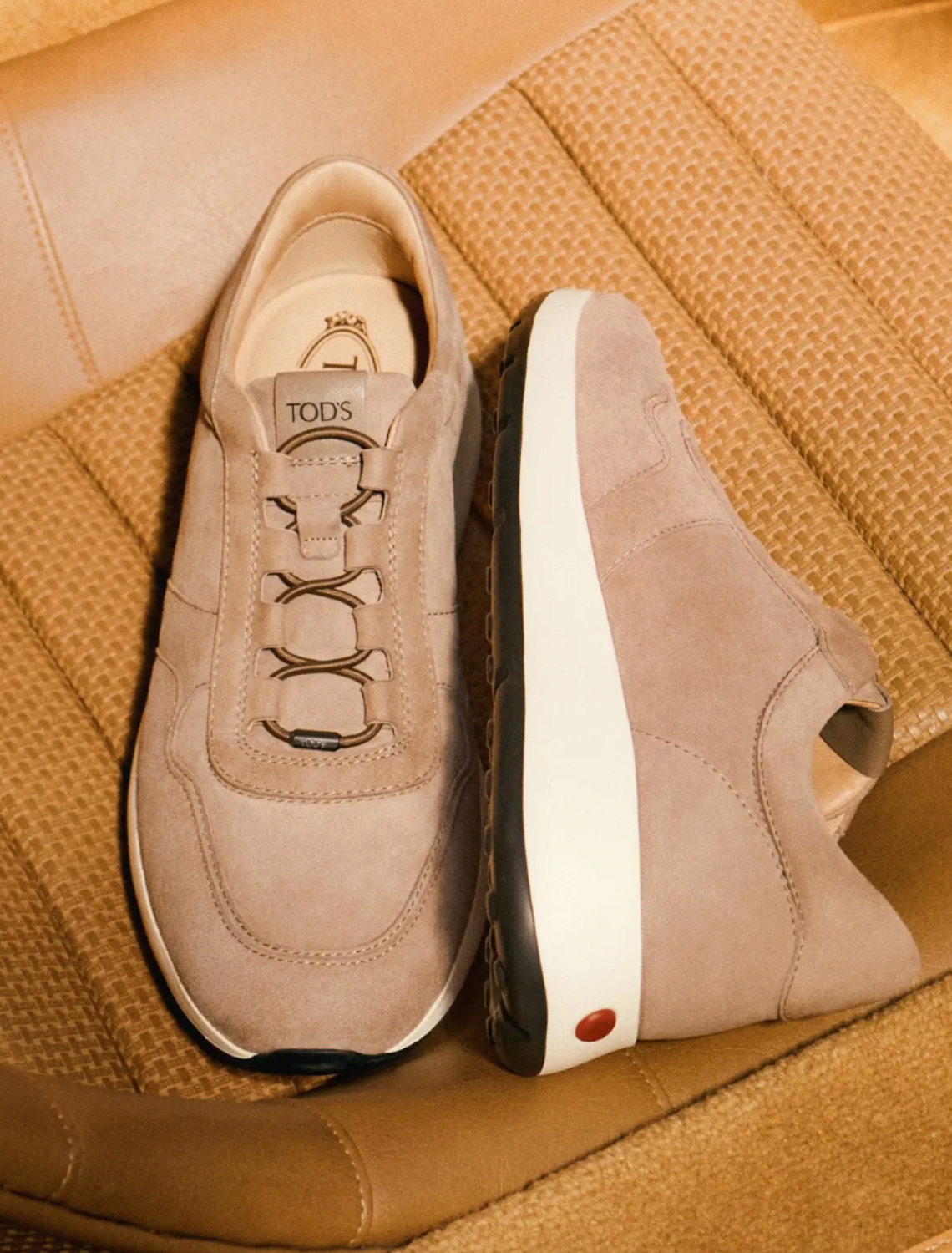 Ideal for those who want to move effortlessly between work and leisure, the Red Dot style is defined by its refined yet relaxed construction. The soft leather upper gently embraces the foot, offering immediate comfort without rigidity, while elastic lacing enhances ease of movement. Beneath the surface, innovation works silently. The ultralight sole is rooted in Tod’s tradition. Inspired by a model from the archive, it has been reimagined with a sporty running-shoe profile. Understated materials elevate the design, making it versatile enough to pair with tailored suits as easily as with relaxed urban wear.