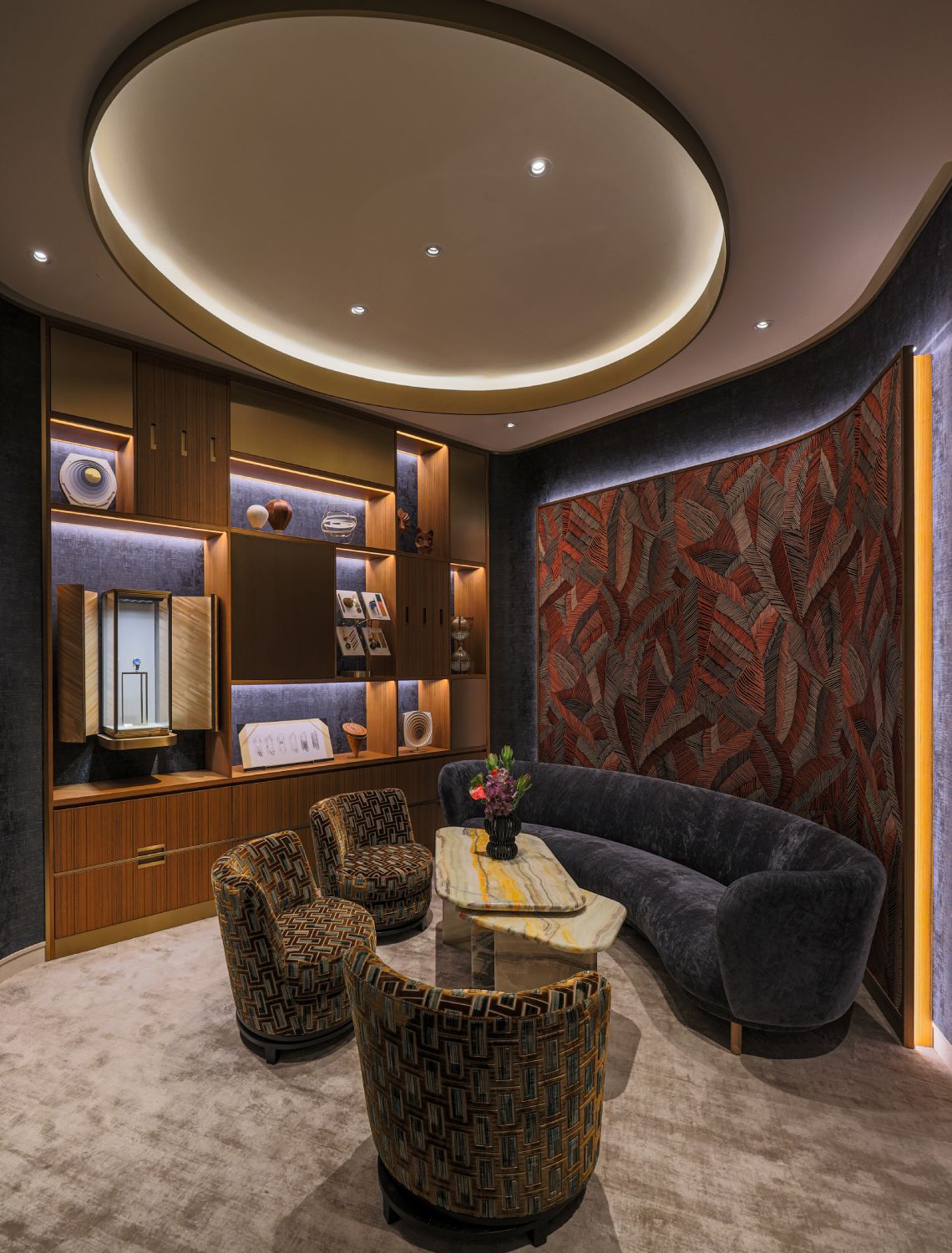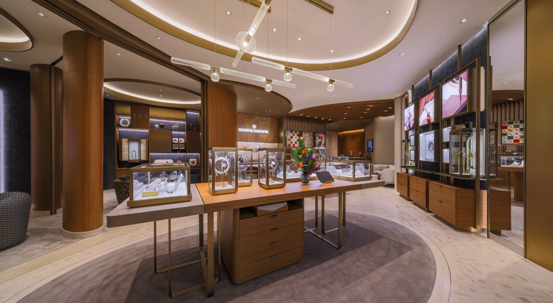 The boutique’s architecture draws from Vacheron Constantin’s visual codes with a sculptural frontage that draws guests into an expansive space distinguished by refinement and comfort. A central exhibition area presents the Vacheron Constantin’s core collections, alongside rare creations from Les Collectionneurs and Les Cabinotiers. Circular design elements subtly reference the passage of time while guiding visitors through the displays. Elsewhere, two private salons offer a more intimate setting for collectors.