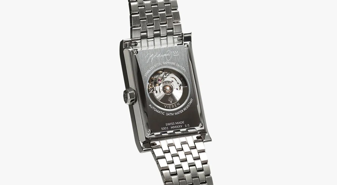 Looking for something a little different than the usual Swiss fare for your wrist? Vieren, a brand founded by Jess Chow (a daughter of two watchmakers) and Sunny Fong (an award-winning designer), is celebrating its 5th birthday with unique watches created by five different artists. James Goldcrown from California, Roberta Boffo from Italy, Cosmodernism from Poland, Kelly Violet from England, and Sébastien Preschoux from France has all lent their hand to creating the funky dials for the the 41.5 × 27 × 9.2 mm timepieces.