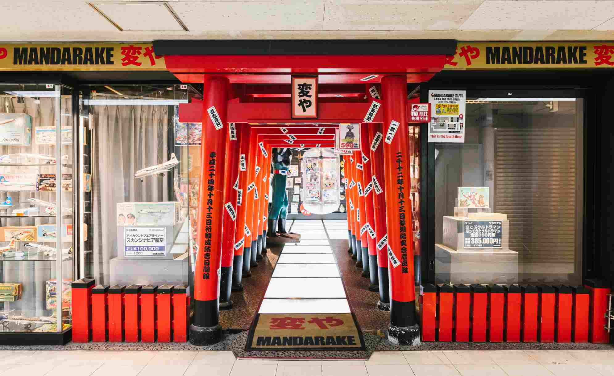 The most striking Mandarake store, however, may be Hen-ya—perhaps best translated as “Another World.” Located on the fourth floor, it primarily sells highly-coveted vintage toys and retro figurines often sought after by manga-loving foreign collectors and enthusiasts at appropriately exciting prices. With its multiple torii gates at the entrance and bass-heavy atmospheric music, the slightly sequestered location on the fourth floor hasn’t prevented it from becoming a beloved destination of sorts for locals. (And it’s a great photo op, too.)