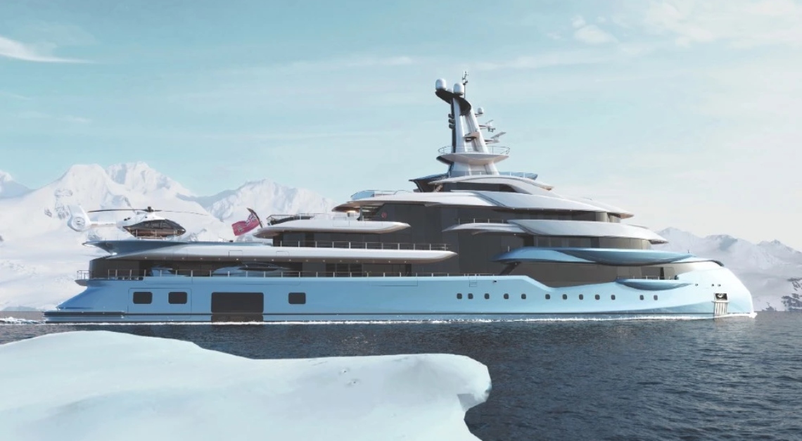 Its five-deck layout has been tailored for maximum use of interior space and maximum natural light transmission, with vast expanses of glazing across its two main decks. The swimming pool on the main deck has a transparent floor, which floods the beach club beneath it with natural light. Light coloured wood decking and Paola Lenti furniture adds to the impression of airiness.